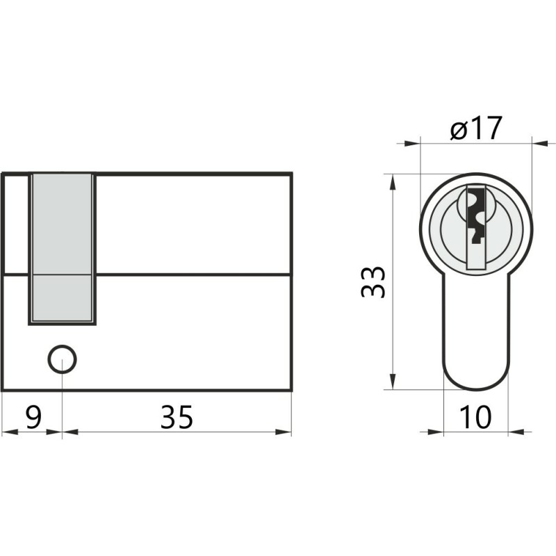 M&D Серцевина одностороння 9/35 нікель, 3 ключі