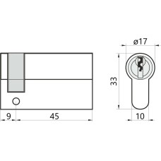 M&D Серцевина одностороння 9/45 нікель, 3 ключі..