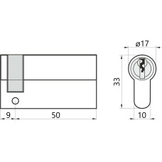 M&D Серцевина одностороння 9/50 нікель, 3 ключі..