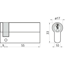 M&D Серцевина одностороння 9/55 нікель, 3 ключі