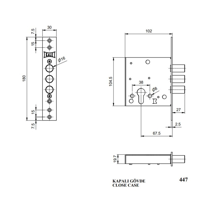 KALE KILIT Замок сувальдний 447 без відповідної планки (аналог замка гардіан 3201)